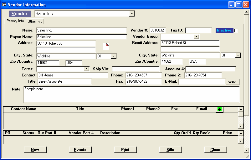 A.M.M.O. transfers all the Contact's information and history to the Vendors database.